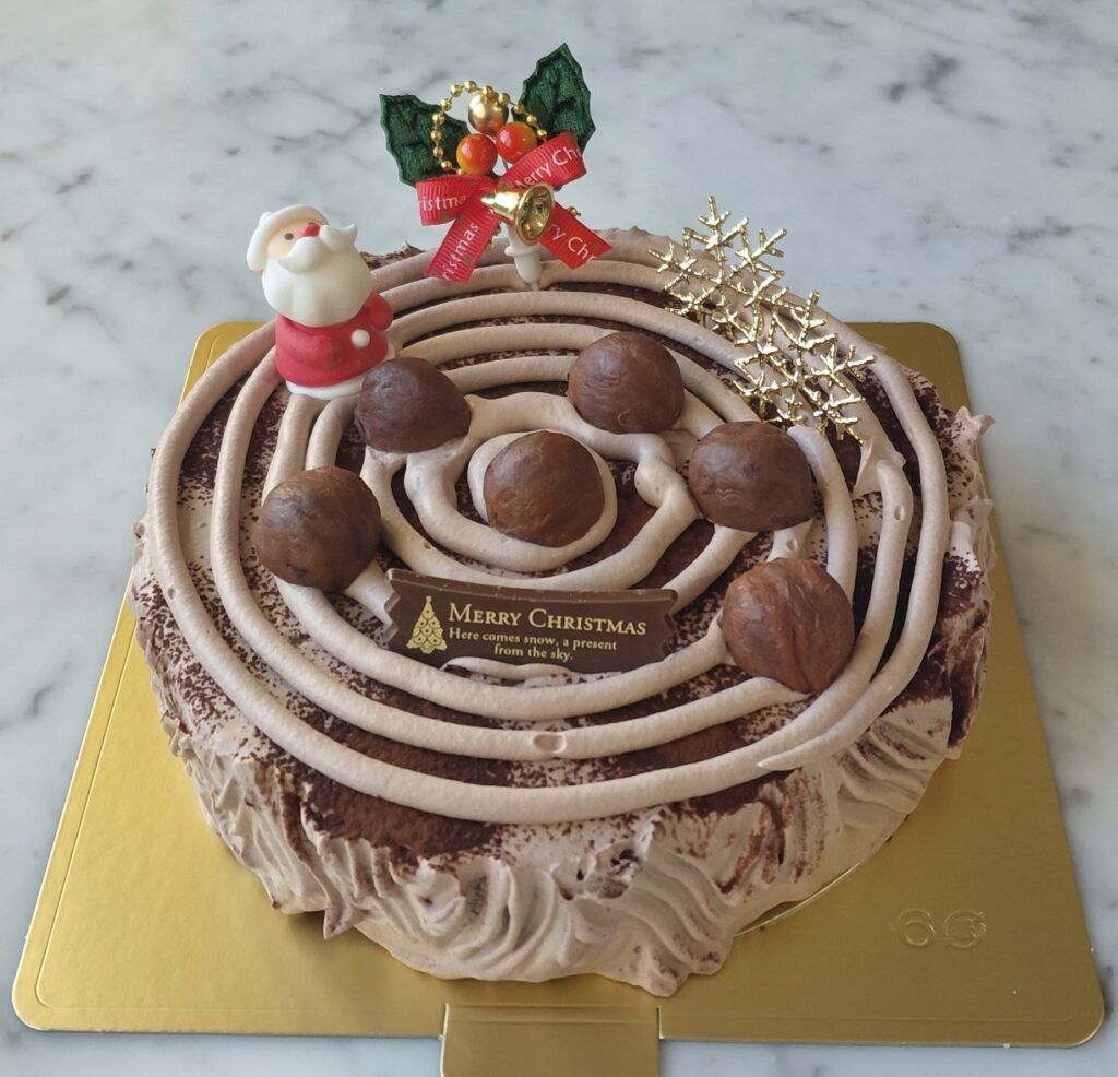 2025年のクリスマスケーキはこのケーキになります。中は二段になっていて、イチゴをそれぞれサンドしています。