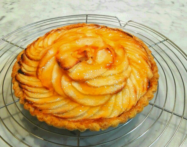 ブリゼ生地に煮詰めたリンゴ、生のリンゴをたっぷりのせて焼き上げます。素朴ですが、リンゴの時期に作りたくなるケーキです。